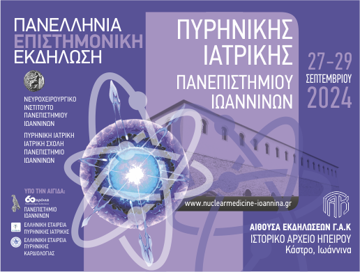 Το Κλινικό Εργαστήριο Πυρηνικής Ιατρικής, του Tμήματος Ιατρικής του Πανεπιστημίου Ιωαννίνων σας προσκαλεί να συμμετάσχετε στην Πανελλήνια Επιστημονική Εκδήλωση που θα πραγματοποιηθεί στις 27-29 Σεπτεμβρίου 2024, στην αίθουσα εκδηλώσεων Γ.Α.Κ, Ιστορικό Αρχείο Ηπείρου, στο μαγευτικό Κάστρο των Ιωαννίνων.